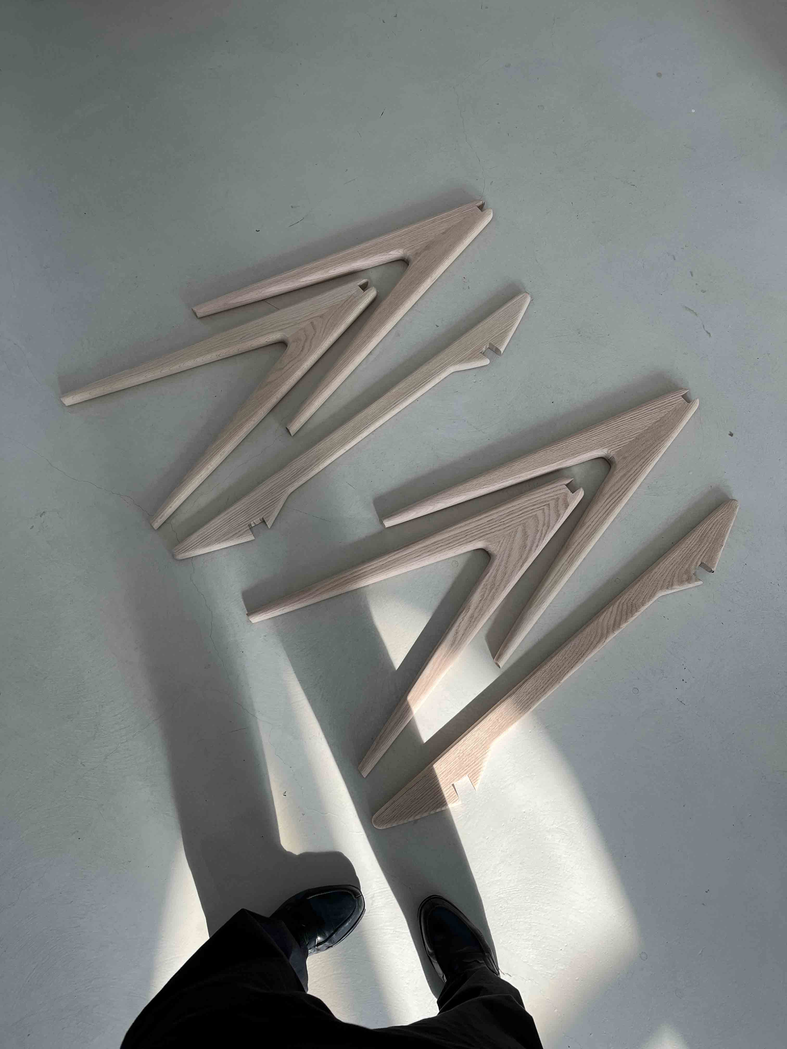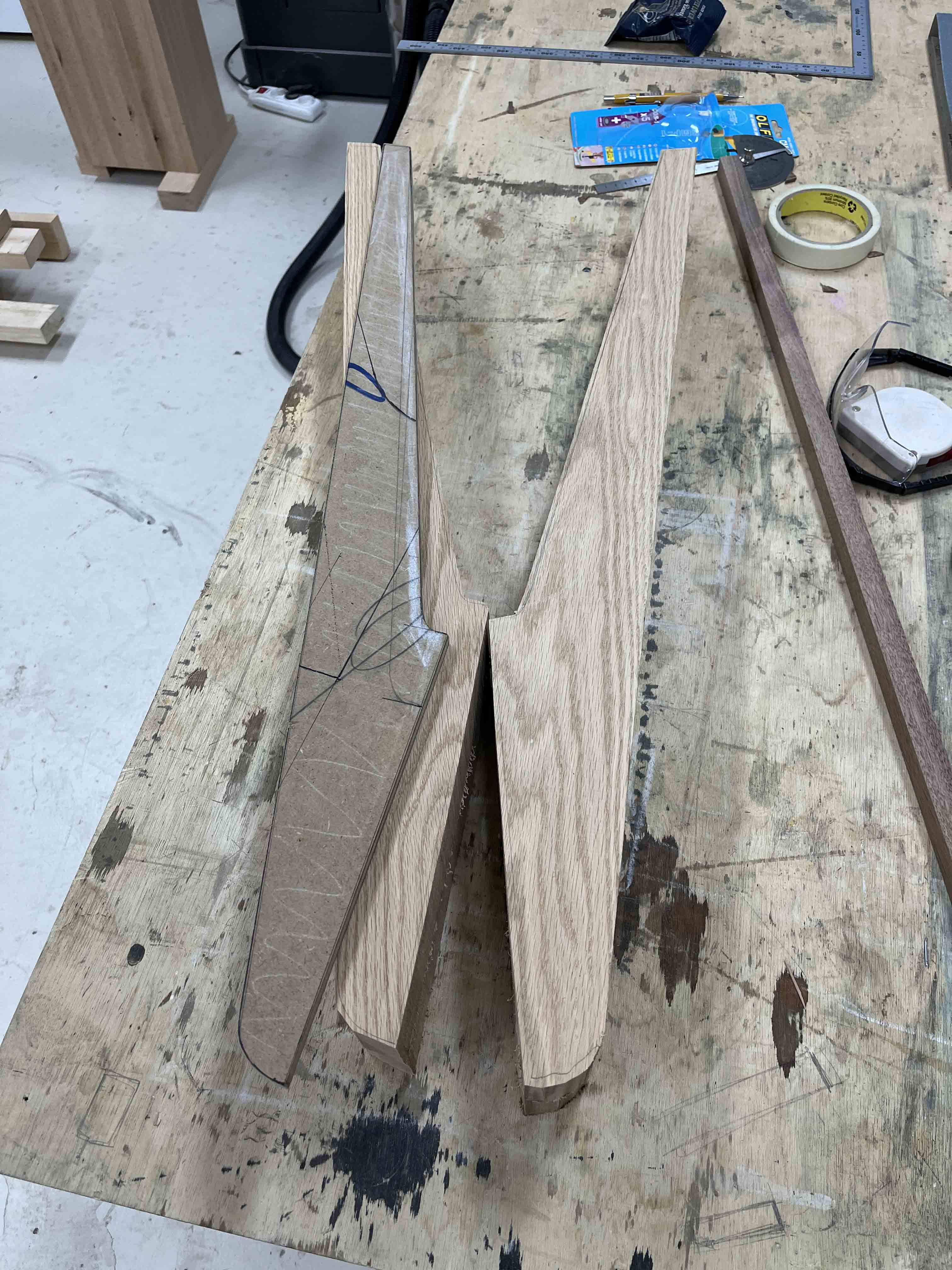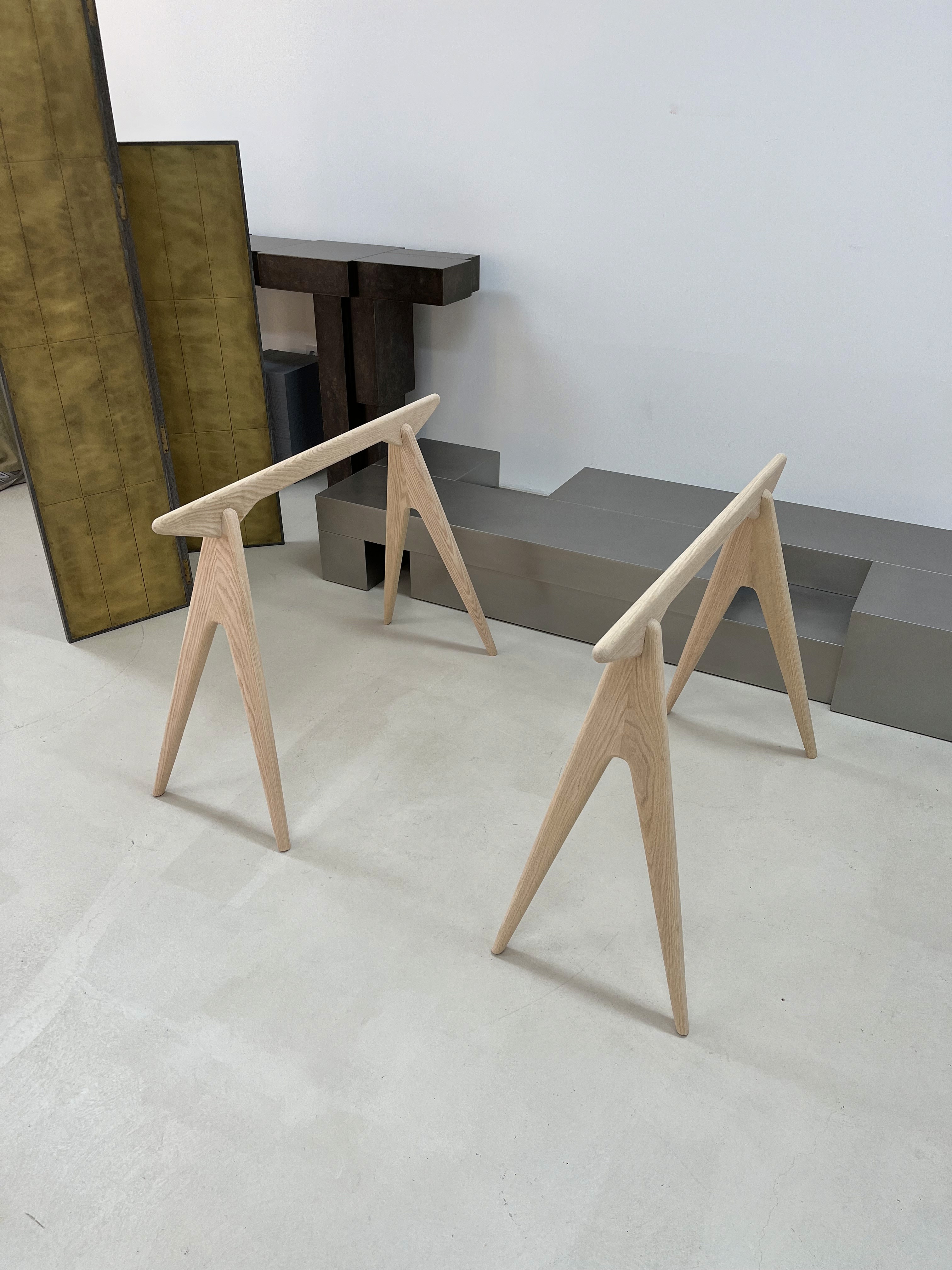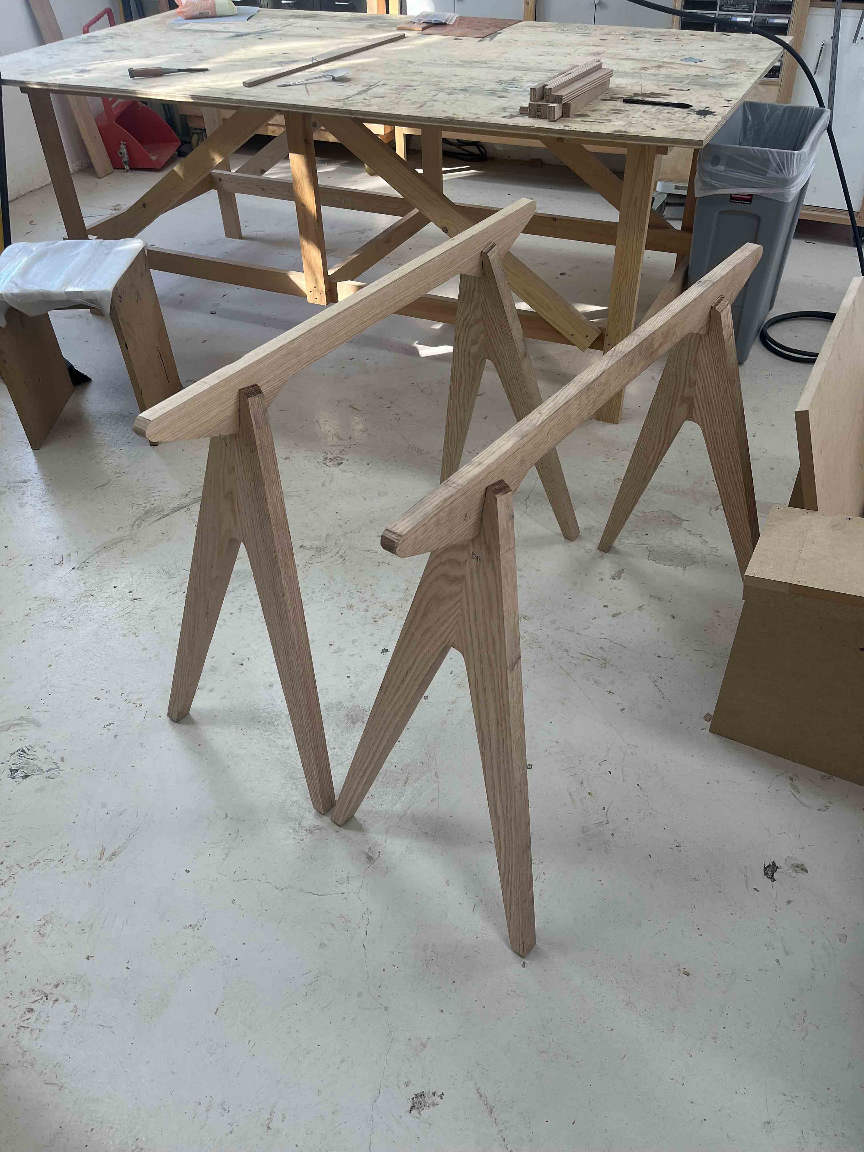 Crafting red oak trestles for my workspace at Hyungshin Hwang's studio in Paju.